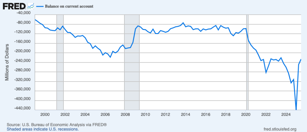 Por tanto, el déficit no es únicamente señal de debilidad, sino también un indicio de fortaleza: Estados Unidos actúa como el principal centro financiero mundial y emisor de moneda de reserva. Si mañana desapareciera el déficit sin aumentar el ahorro nacional, algo tendría que ajustarse: o se reduce la inversión interna (limitando el crecimiento futuro) o el dólar se deprecia, con repercusiones globales.